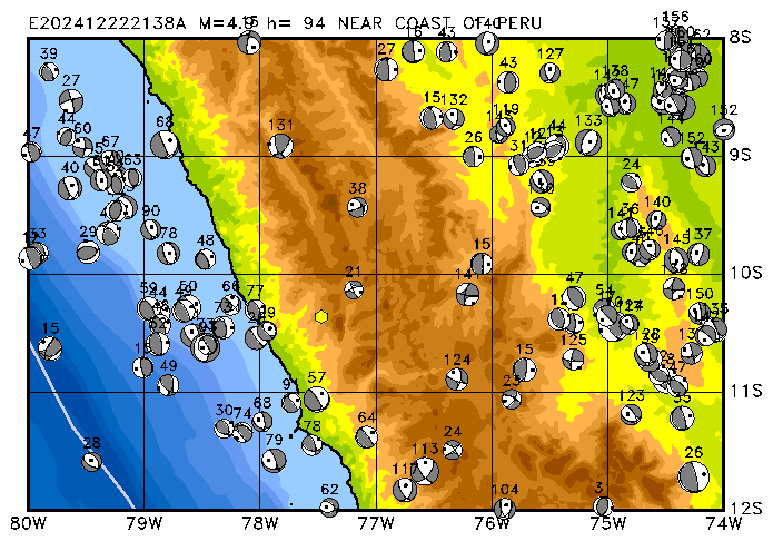 248 NEAR COAST OF PERU PDEW h= 94 M=4.9 E202412222138A