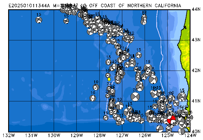 017 OFF COAST OF NORTHERN CALIFORNIA PDEW h= 10 M=3.9 E202501011344A