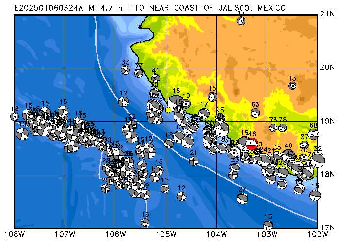 091 NEAR COAST OF JALISCO, MEXICO PDEW h= 10 M=4.7 E202501060324A