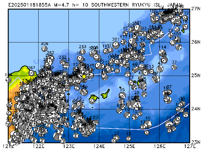 395 SOUTHWESTERN RYUKYU ISL., JAPAN SWEQ h= 10 M=4.8 E202501291723A
