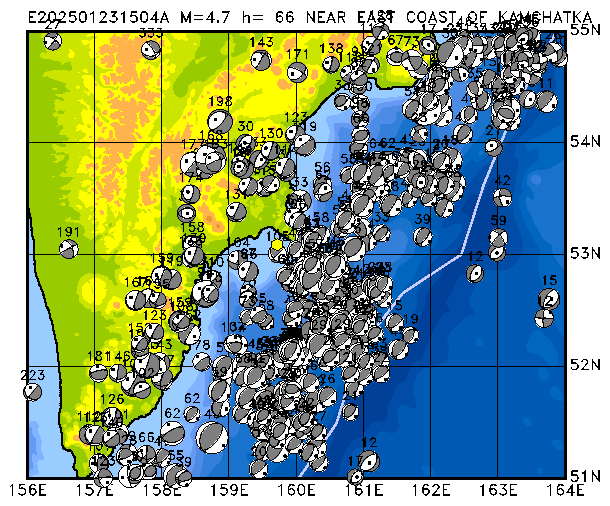 321 NEAR EAST COAST OF KAMCHATKA PDEW h= 67 M=4.7 E202501231504A