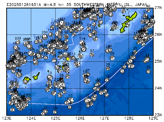 350 SOUTHWESTERN RYUKYU ISL., JAPAN PDEW h= 35 M=4.8 E202501261631A