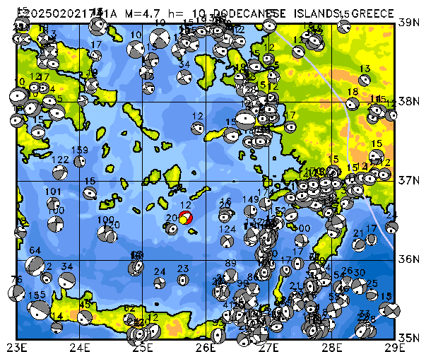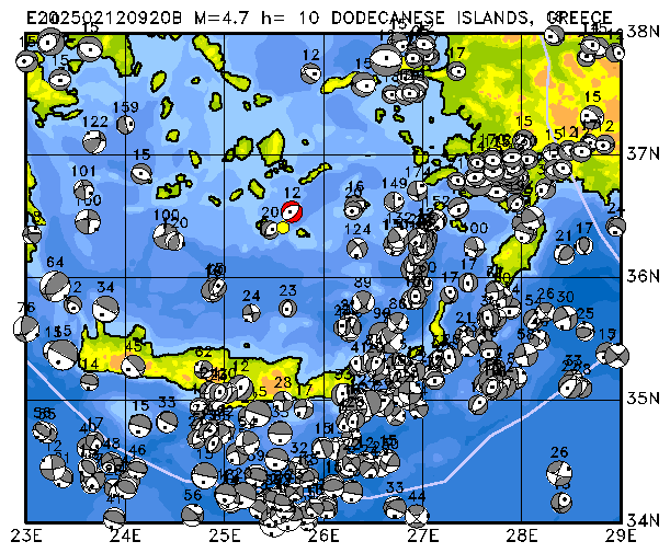 021 DODECANESE ISLANDS, GREECE PDEW h= 10 M=4.7 E202502021741A