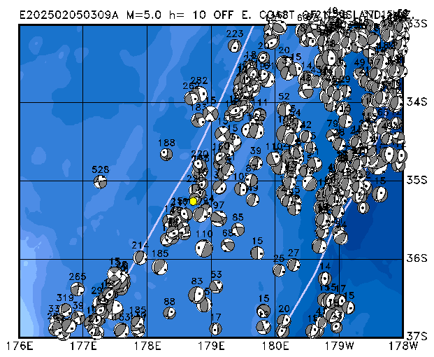 066 OFF E. COAST OF N. ISLAND, N.Z. PDEW h= 10 M=5.0 E202502050309A