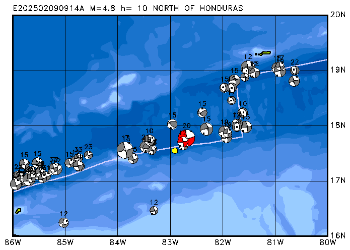 009 NORTH OF HONDURAS PDEW h= 10 M=4.9 E202502011748A