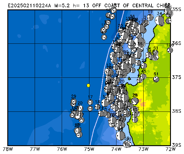 019 NEAR COAST OF CENTRAL CHILE PDEW h= 49 M=4.7 E202502021354A