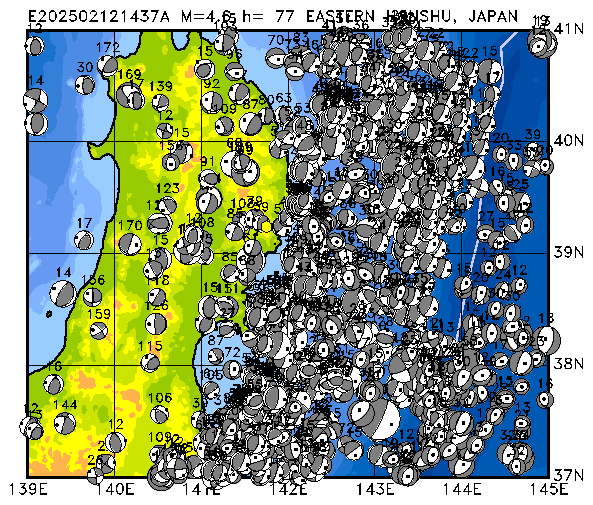 264 NEAR EAST COAST OF HONSHU, JAPAN PDEW h= 69 M=4.8 E202502211301A