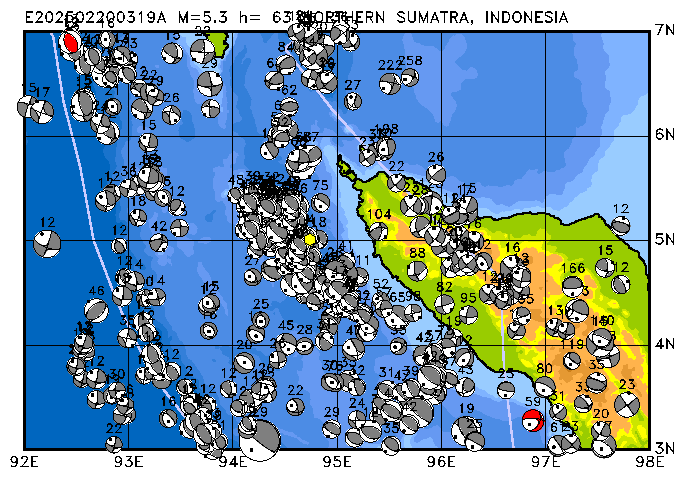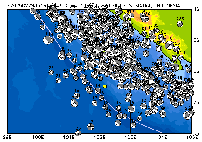 278 SOUTHWEST OF SUMATRA, INDONESIA PDEW h= 10 M=5.0 E202502230516A