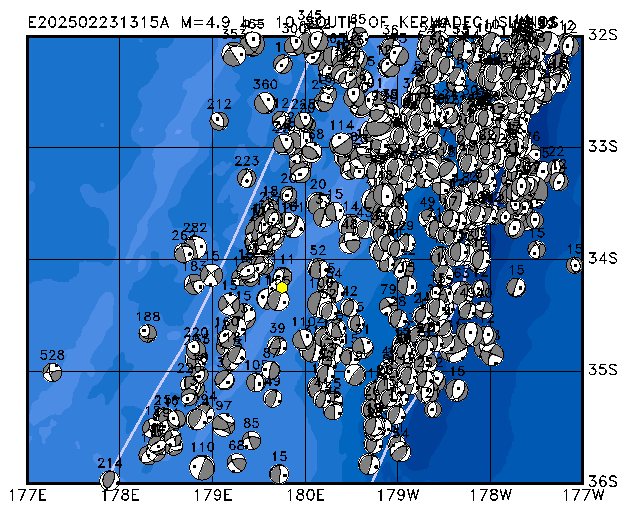 281 SOUTH OF KERMADEC ISLANDS SWEQ h= 10 M=4.9 E202502231315A