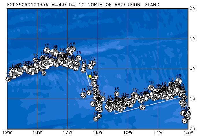 001 NORTH OF ASCENSION ISLAND SWEQ h= 10 M=4.9 E202509010035A