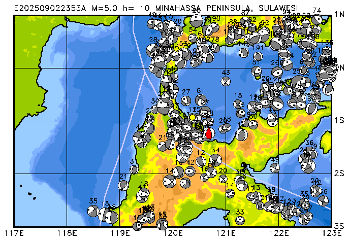 021 MINAHASSA PENINSULA, SULAWESI PDEW h= 10 M=5.0 E202509022353A