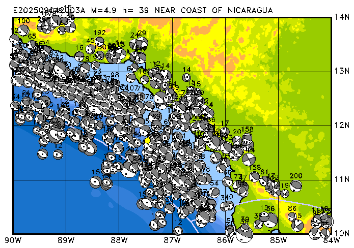 048 NEAR COAST OF NICARAGUA PDEW h= 40 M=4.9 E202509042003A