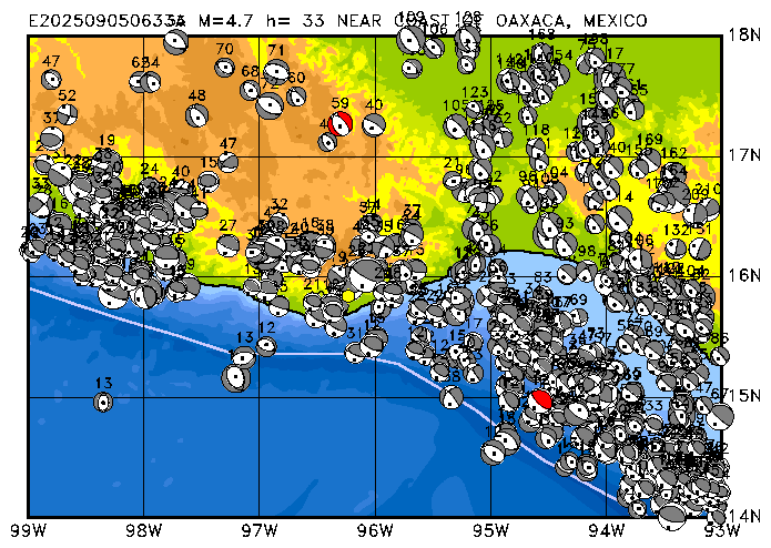 054 NEAR COAST OF OAXACA, MEXICO PDEW h= 34 M=4.7 E202509050633A