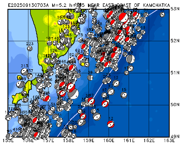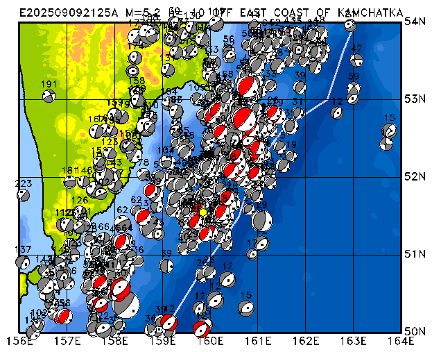 342 OFF EAST COAST OF KAMCHATKA PDEW h= 35 M=5.2 E202509250959A