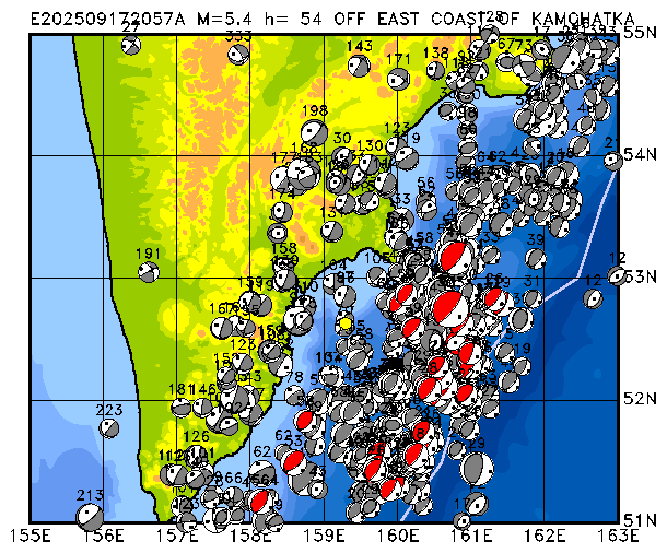 390 OFF EAST COAST OF KAMCHATKA PDEW h= 42 M=5.5 E202509292207A