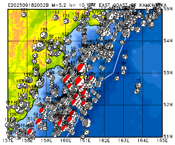 349 OFF EAST COAST OF KAMCHATKA PDEW h= 10 M=5.0 E202509251802A