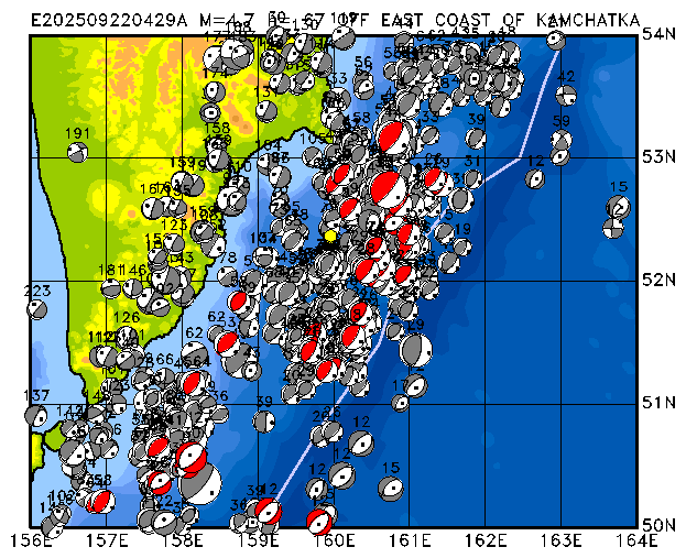 388 NEAR EAST COAST OF KAMCHATKA PDEW h= 74 M=4.7 E202509290846A