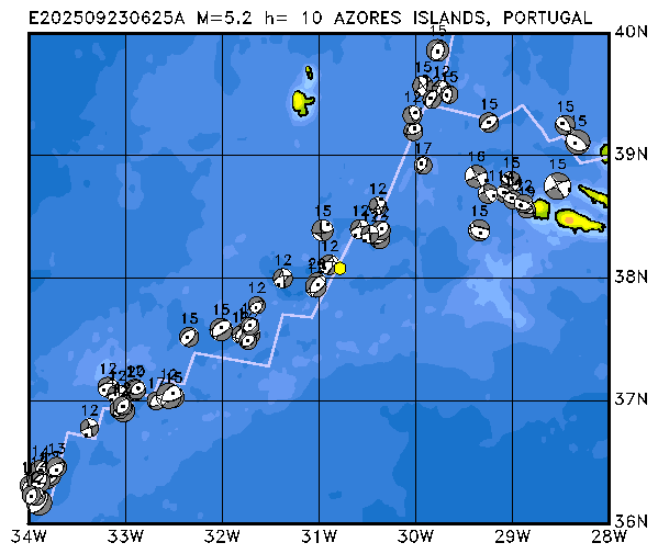 316 AZORES ISLANDS, PORTUGAL PDEW h= 10 M=5.2 E202509230625A