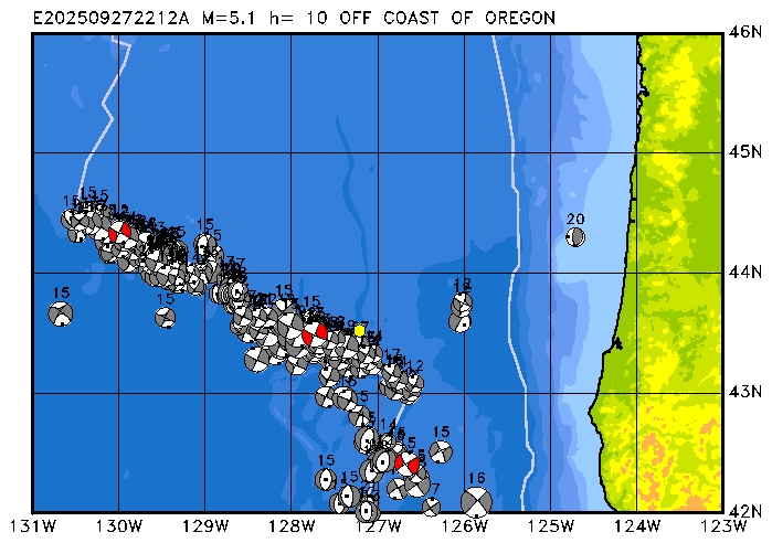 376 OFF COAST OF OREGON PDEW h= 10 M=5.1 E202509272212A