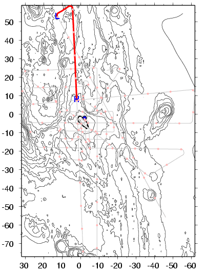 offset in arrivals across 660 does not appear to be from topography. The seafloor slopes gradually but the two ends of the traveltime curves do not appear to meet. Likely a small LVZ, perhaps associated with the NRZ.