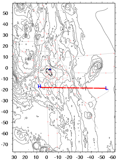 Pn-gap not clear but appears to be near sh.2570. This would put cross over at 39-40 km. Closer than most