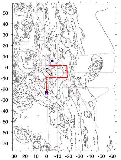 signal is weak or missing over east flank of volcano. Topo does not seem drastic enough to attenuate signal this much.