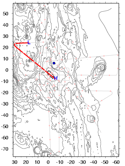 Odd bumps in first arrival over caldera (~sh. 2230) though topography is not too drastic. Could be interference with phases from outside and inside caldera