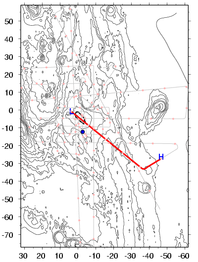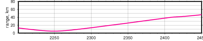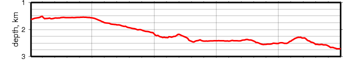 Good high frequency content even at 40+ km. PmP present at shot 2360-2430 (range=30-40 km)
