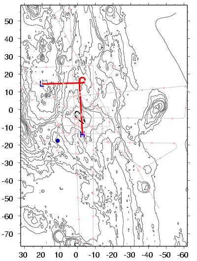 Large shadow zone corresponds with topo drop off into Helium basin. No secondary arrival seen.