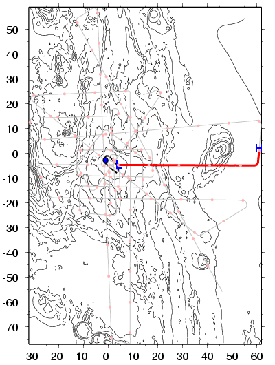 No PmP or Pn is clear. Pn would fall near seamount anyway.