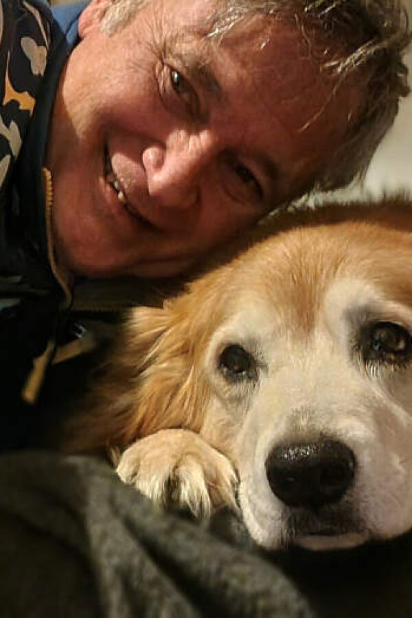 Bill Menke and Estel-the-dog, 2025