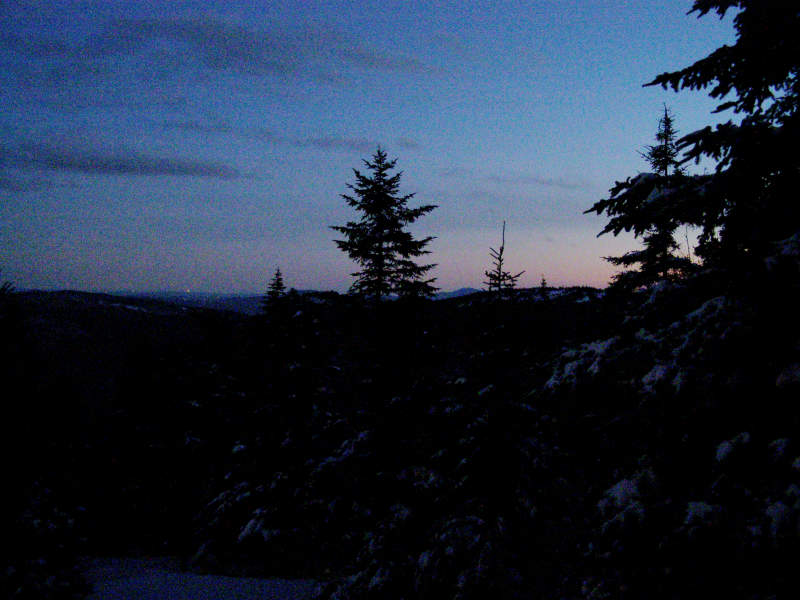 Twilight, porch of AMC High Cabin, Mt. Cardigan
