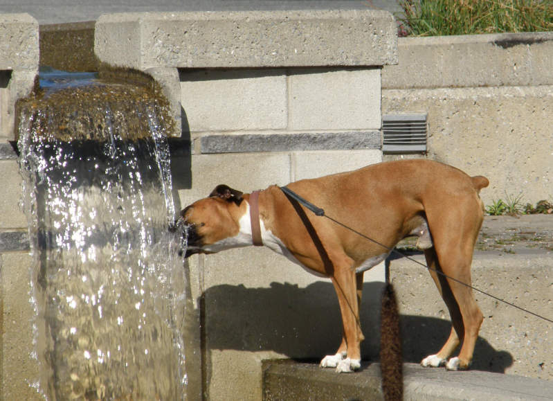 Dog drinking from fountain
