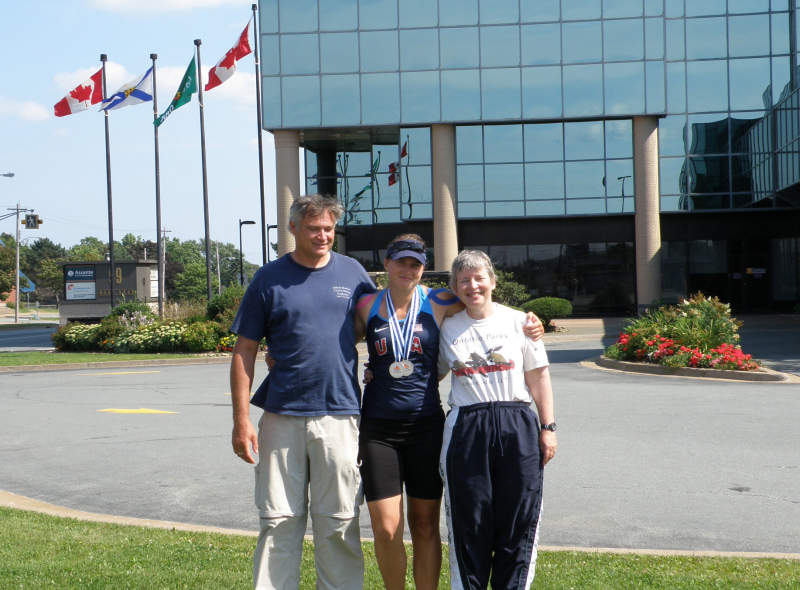 Bill Menke (left), Hannah Menke and Dallas Abbott, outside Holiday Inn, Halifax, Nova Scotia