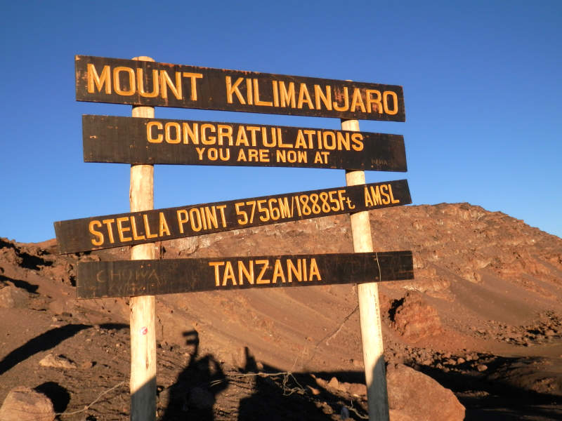 Stella Point (Elevation 18,885 ft) sign, Mt Kilimanjaro