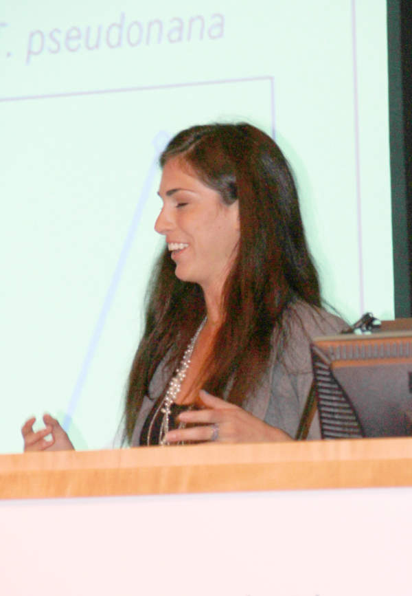 Kayla Farrell, at the podium