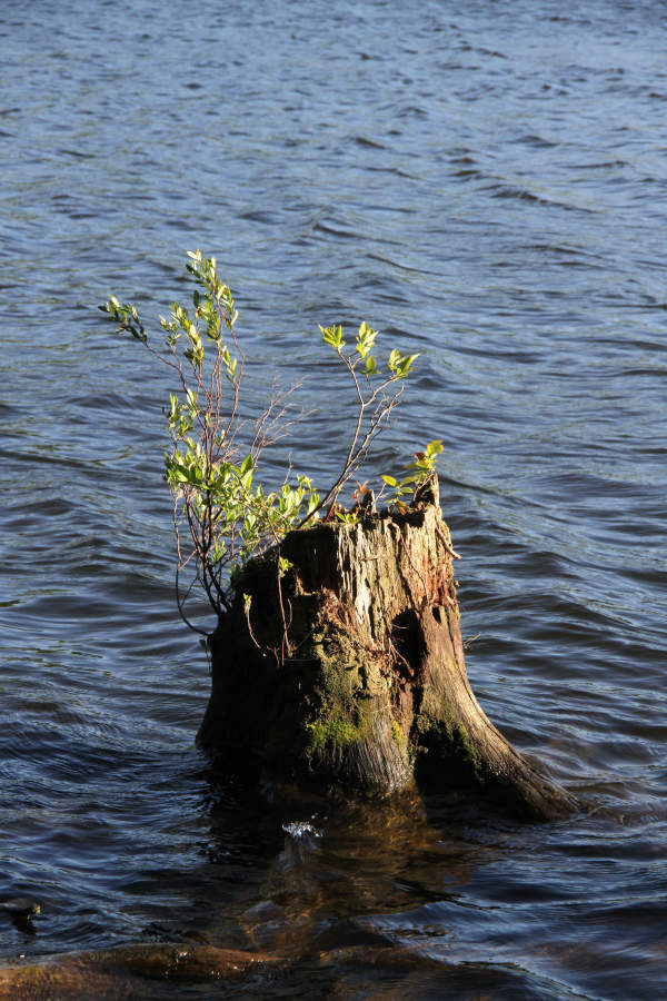 Stump with vegetation, Tamarack Pond near Moretti Outpost