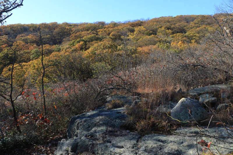Rock ledges along the Suffern - Bear Moutain Trail on Panther Mountain
