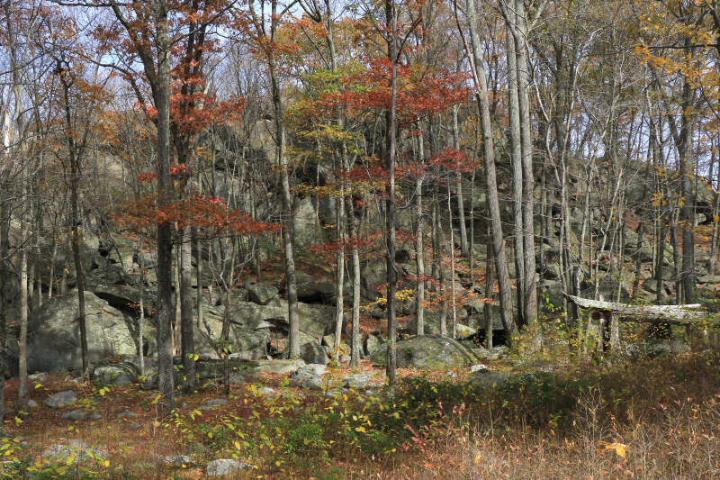 Boulders at the base of the cliff