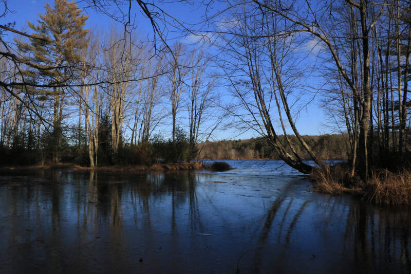 Flooded area on the shore of the Androscoggin River, along the Homestead Trail