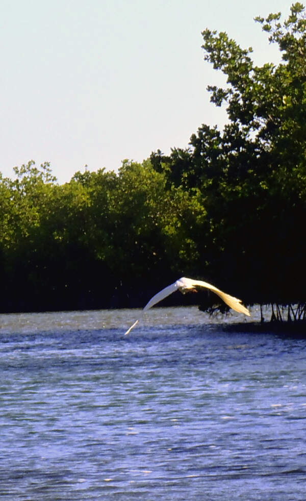 Great White Heron, flying away