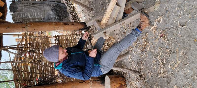 Katie Hood, woodworking at the Scottish Crannog Center, Kenmore, Scotland