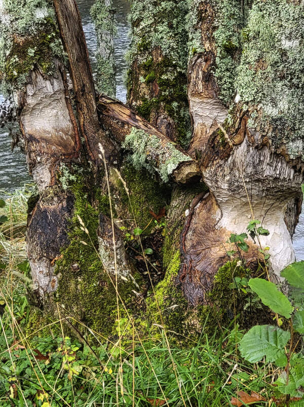 Beaver-gnawed trees, along the River Tay, Kenmore, Scotland (detail)