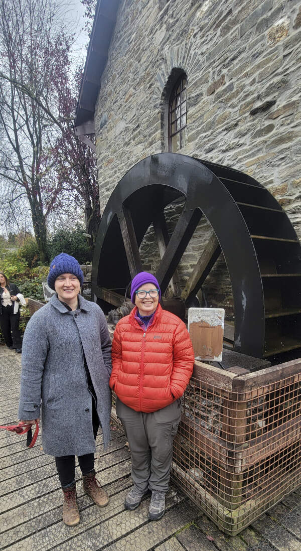 Hannah Menke (left) and Dallas Abbott, outside the Bridge End Mill, Killin, Scotland