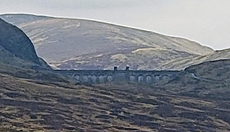 Concrete dam on Lochan (small lake) na Lairige, as seen from Rob Roy Way, Killin, Scotland (detail)