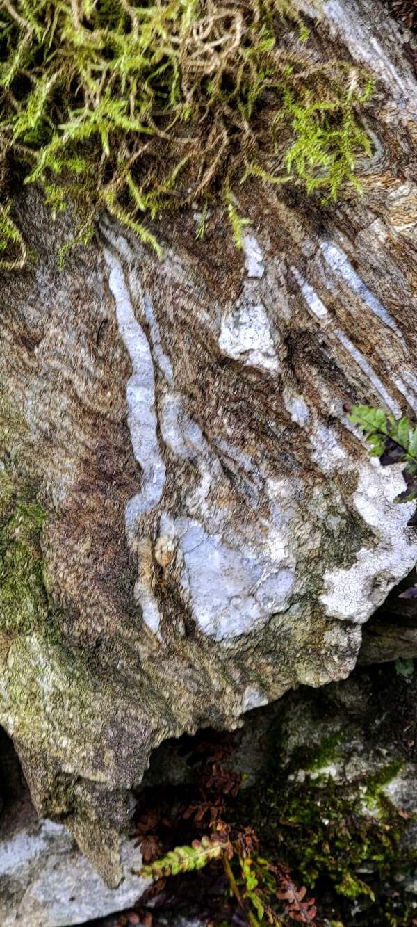 Folded quartz vein in phyllite, rock wall along Rob Roy Way, Killin, Scotland