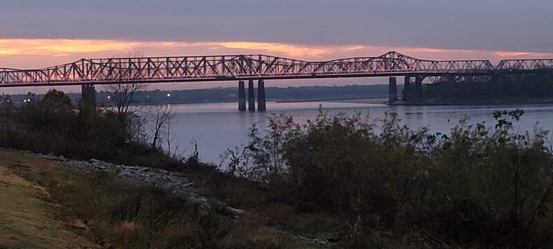 Harahan Iron Bridge, as seen from Tom Lee Park, Memphis, Tennessee