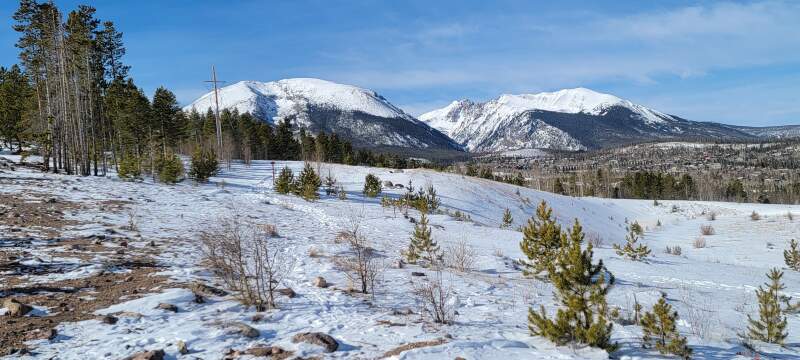 Buffalo Mountain (left) and Red Mountain, as seen from Old Dillon Reservoir, Silverthorne, Colorado