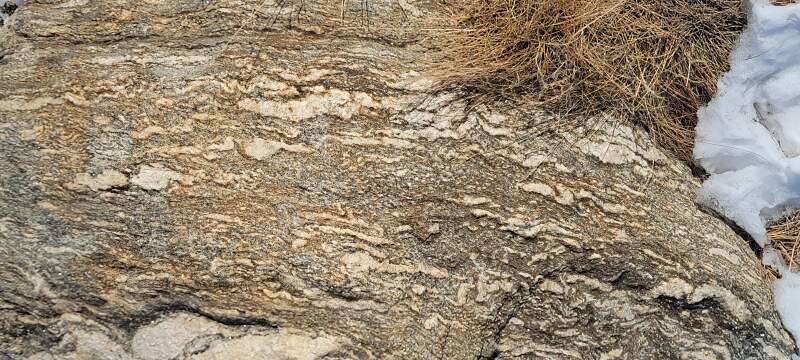 Glacial boulder of gneiss, near Old Dillon Reservoir, Silverthorne, Colorado
