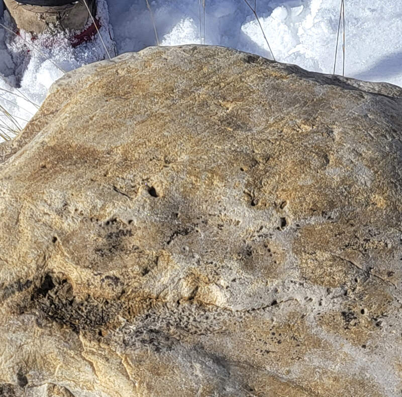 Glacial striae on the quartzite boulder, near Old Dillon Reservoir, Silverthorne, Colorado